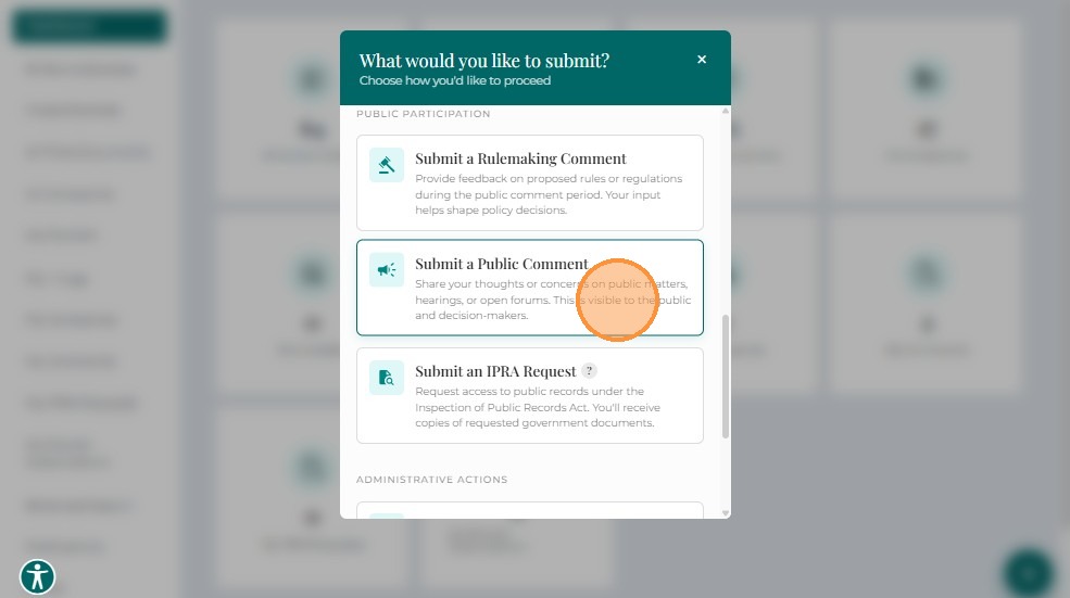 Select Submit a Public Comment to proceed.