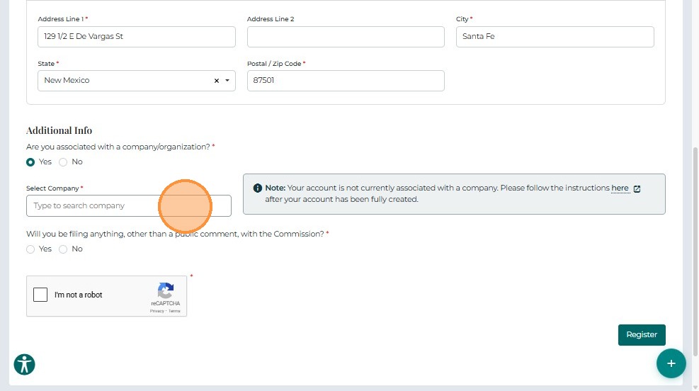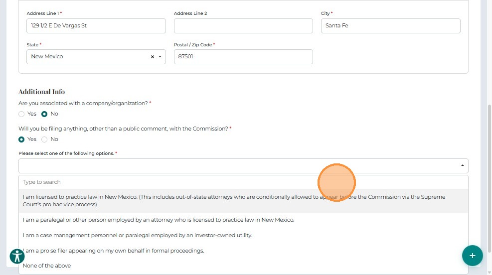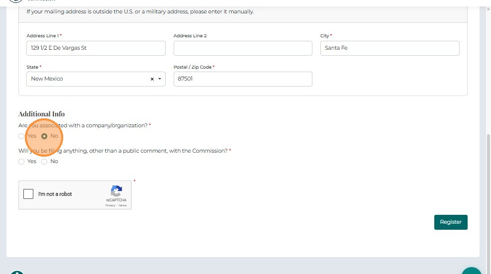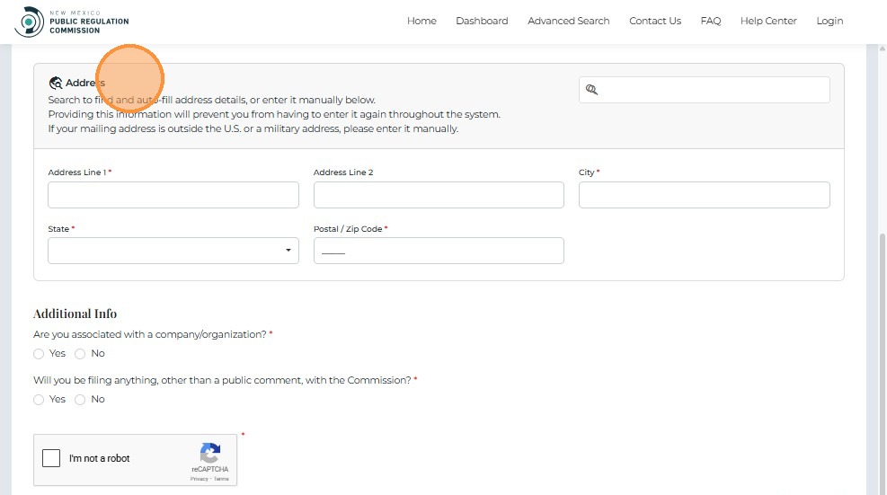 The User Registration process allows new users to create an account on the New Mexico Public Regulation Commission (NMPRC) Online Portal.